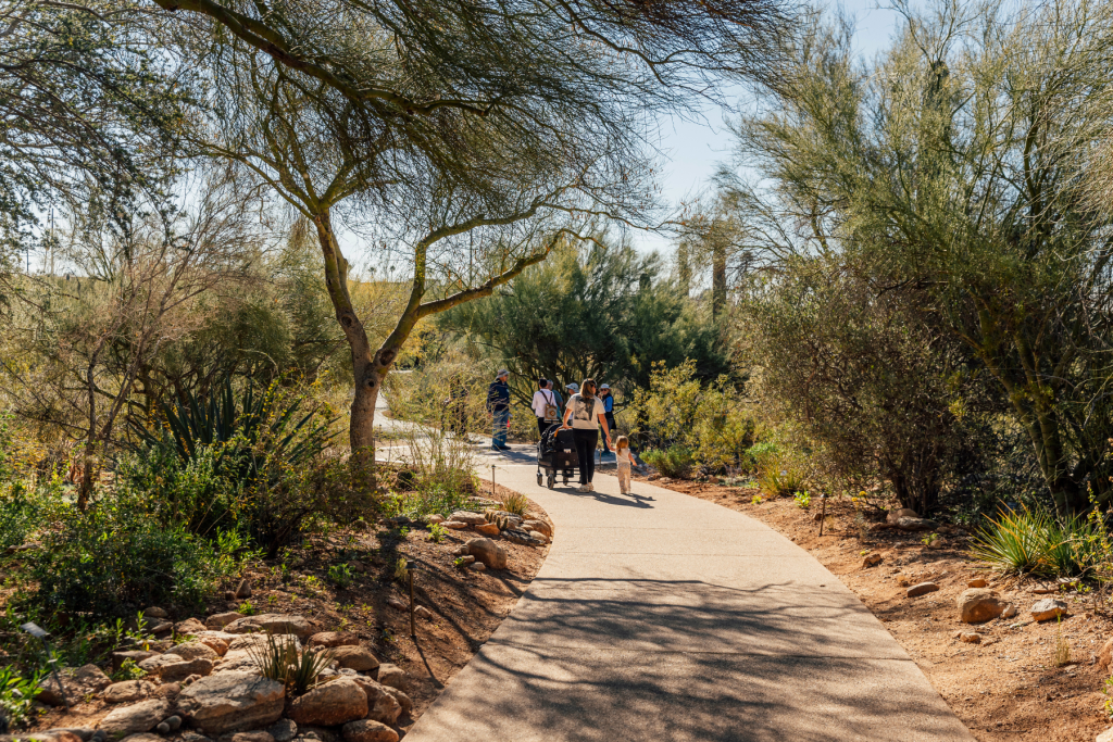 Just in time for the new year, we’re excited to unveil a new pathway connecting the Education Center to the core gardens, made possible by a generous donor. After walking it today, I was delighted to find it delivers even more than expected — offering ADA-accessible access for all abilities while drawing visitors deeper into our native desert landscapes and effectively expanding the garden experience by nearly an acre. The path improves wayfinding, unifies previously disconnected features, and uses an eco-friendly, permeable material made from stone and recycled tires that is both comfortable underfoot and resilient during monsoon storms.