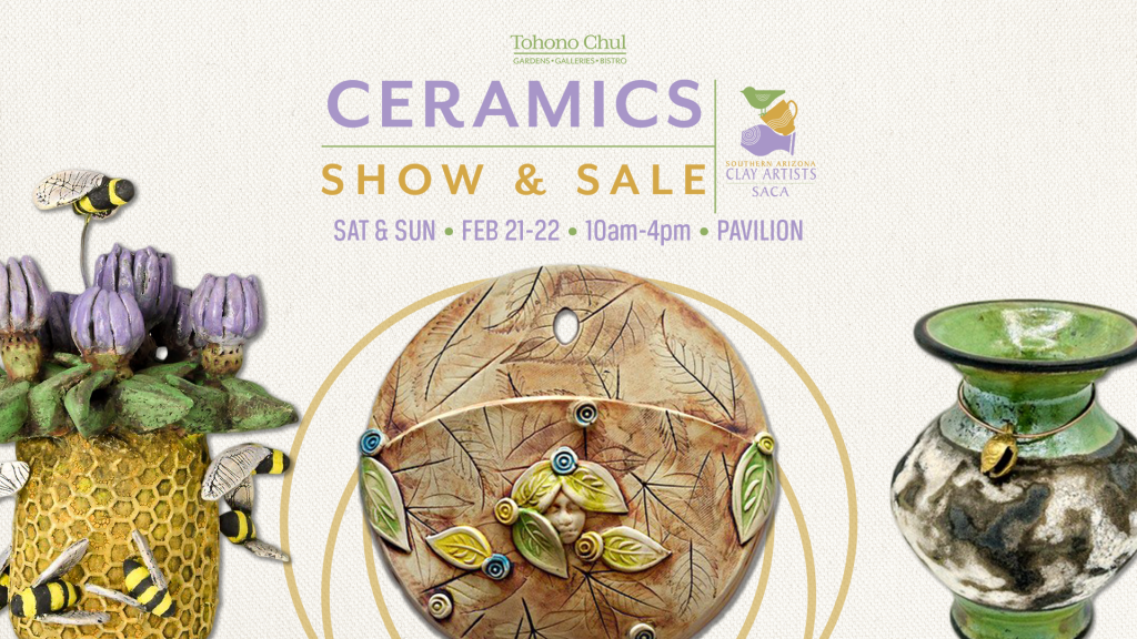 Join us for Tohono Chul’s semiannual SACA Ceramics Show & Sale! Over 25 ceramic artists from the Southern Arizona Clay Artists (SACA) will offer gallery-quality, functional, and decorative ceramics. Whether you’re looking for a functional vase or a decorative piece of art that will be the centerpiece of your home decor, the SACA Ceramics Sale has something for everyone and every budget.