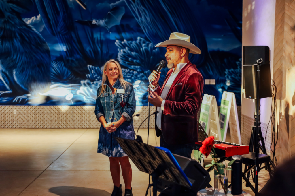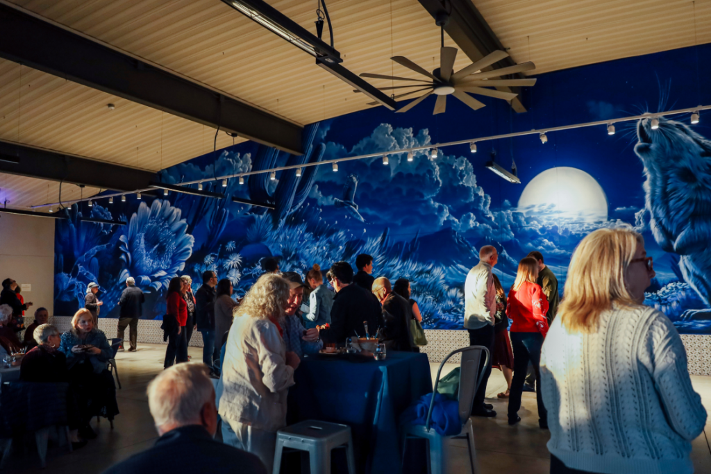Our desert home is still buzzing with the reveal of Twilight Sonoran, a mural by Ignacio Garcia that transforms the pavilion into an extension of our art gallery. The mural is bringing our community together to experience the wonders of the Sonoran Desert, not just on our trails, but through art. 300 folks experienced the inaugural “I Heart Art” event, and over 800 attended the public unveiling in February. Since then, thousands of other visitors have experienced that first-glimpse “wow” upon seeing the mural’s scale and vibrancy, discovered the wildlife and hidden Easter eggs, and felt that gob-smacked feeling that a work of art imparts on the soul.